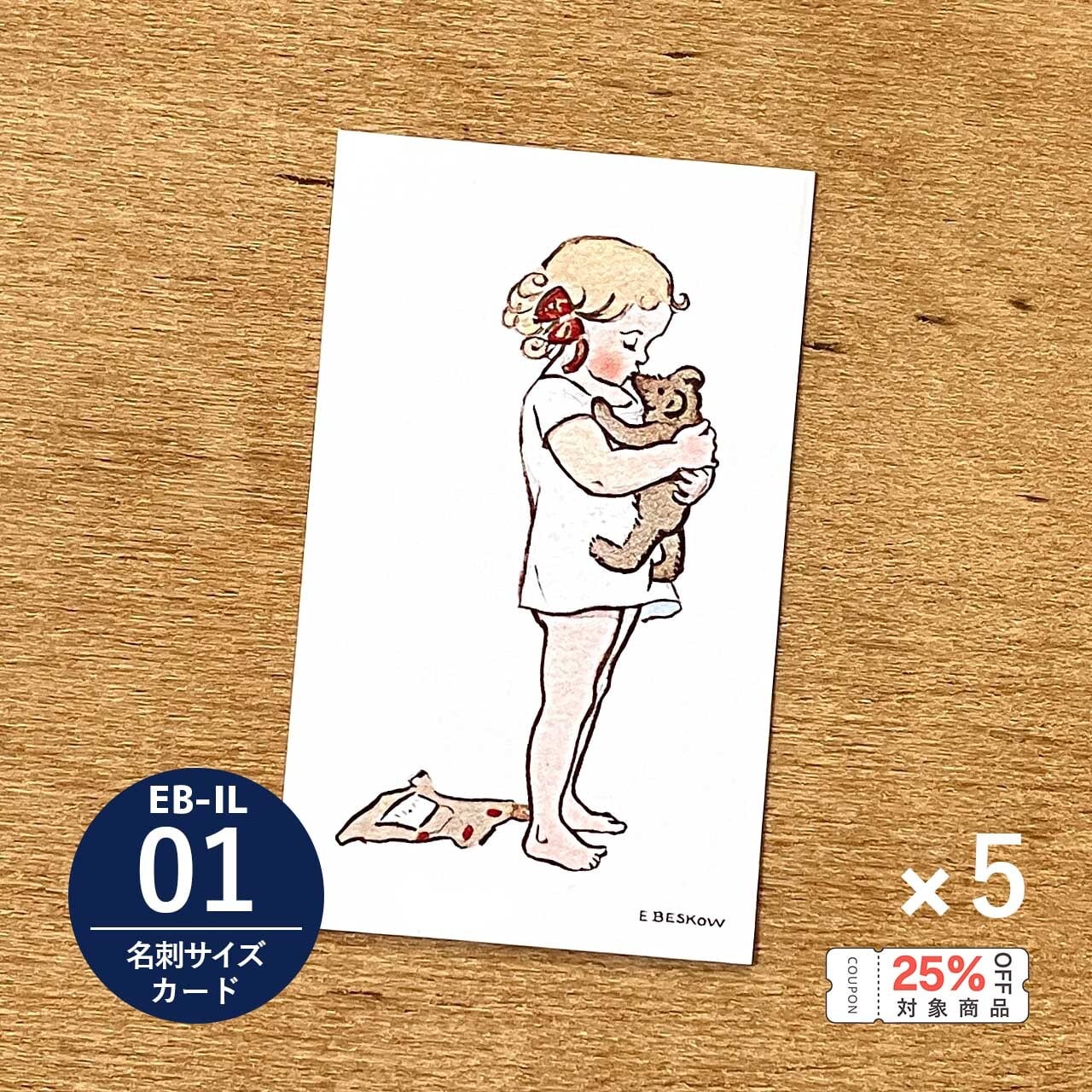 《バラ売り》メッセージカード「エルサ・ベスコフ(EB-IL01)/少女とクマのぬいぐるみ」5枚セット