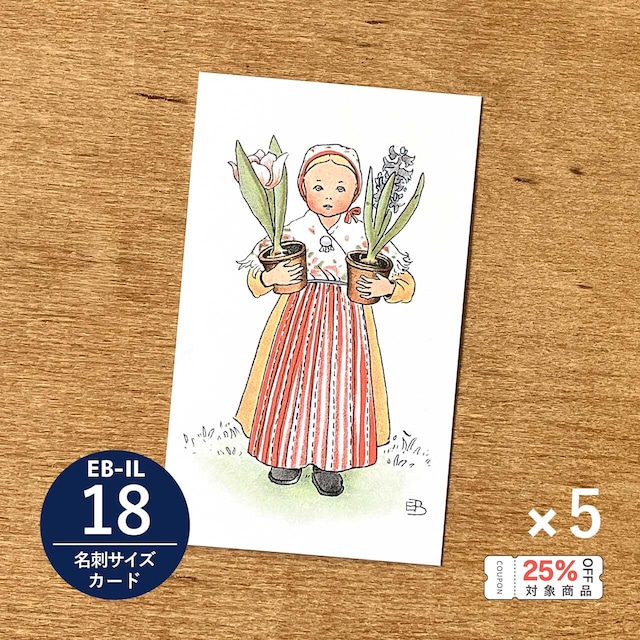 《バラ売り》メッセージカード「エルサ・ベスコフ(EB-IL18)/花を抱えた民族衣装の少女」5枚セット