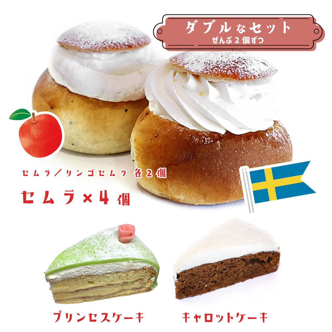 セムラに加え、スウェーデンでの定番ケーキであるプリンセスケーキとキャロットケーキもセットになっている、スウェーデンが堪能できるセットです。