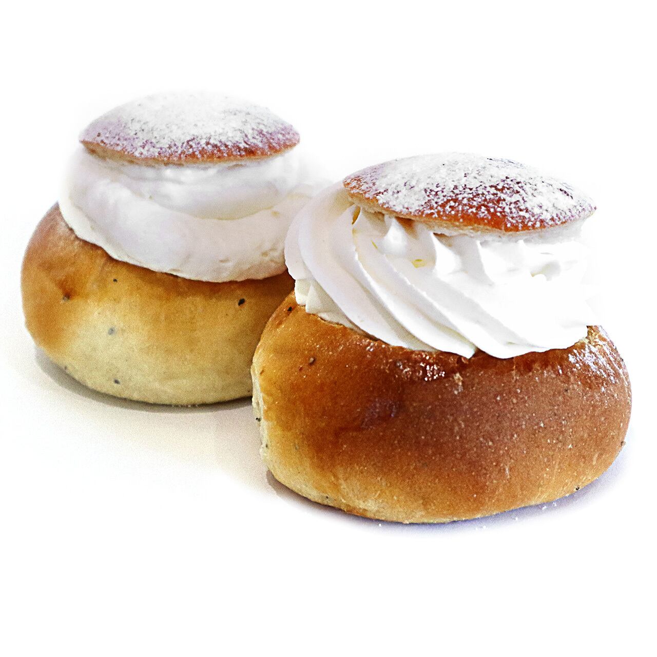 クリスマスが終わったころからイースターの時期まで、スウェーデンの街に春先だけ期間原点で登場する、アーモンドペーストや生クリームを詰めたパンのお菓子「セムラ」。今回は、クラシカルなセムラに独自のアレンジを加えた「リンゴセムラ」とのセットです。