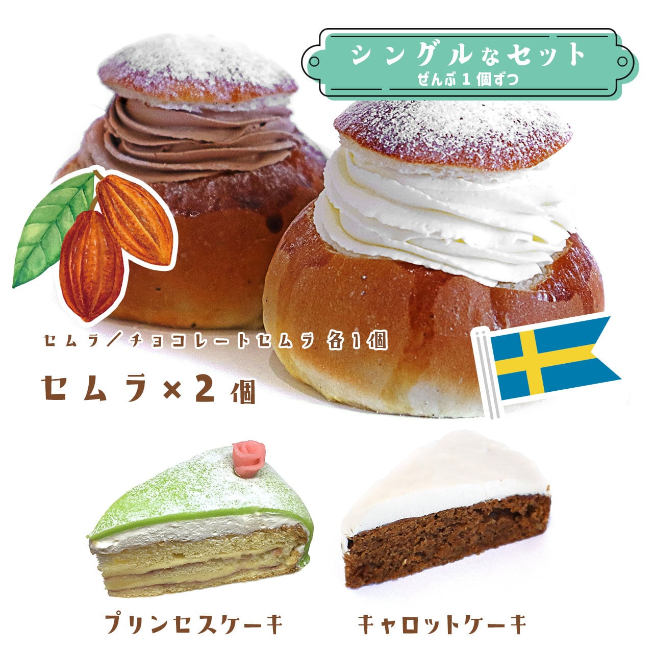 セムラに加え、スウェーデンでの定番ケーキであるプリンセスケーキとキャロットケーキもセットになっている、スウェーデンが堪能できるセットです。