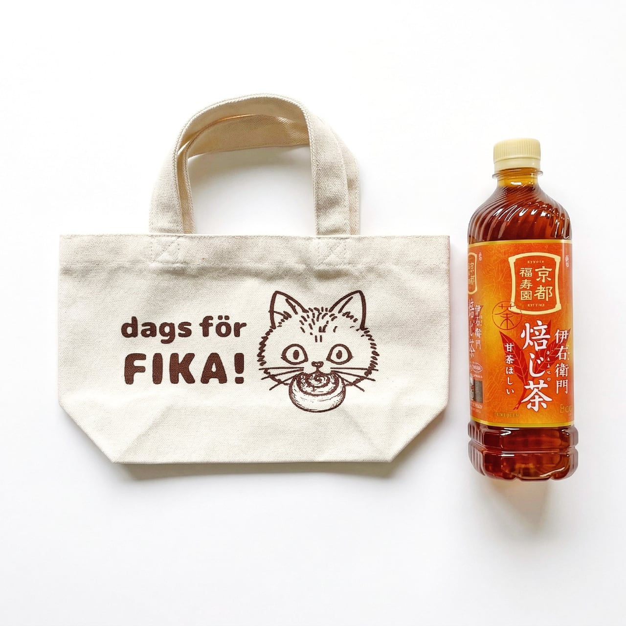 【送料込み】FIKAの時間だ!キャンバス・ランチトートバッグ/ブラウン